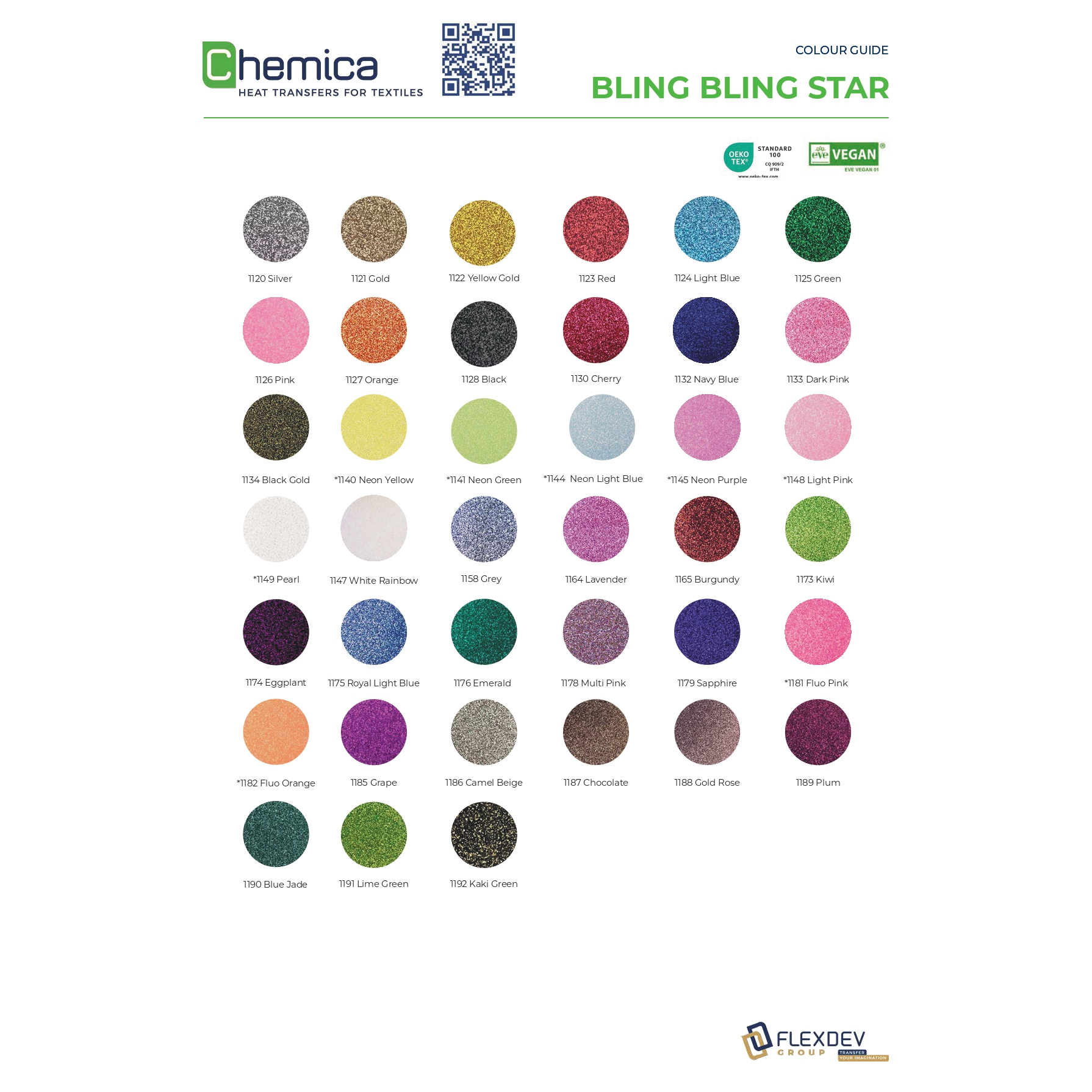 1120 Star silver, 1121 Star gold, 1123 Star red, 1126 Star pink, 1127 Star orange, 1128 Star black, 1147 Star rainbow white, 1430 BB Silver Mirror, 1431 BB Gold Mirror