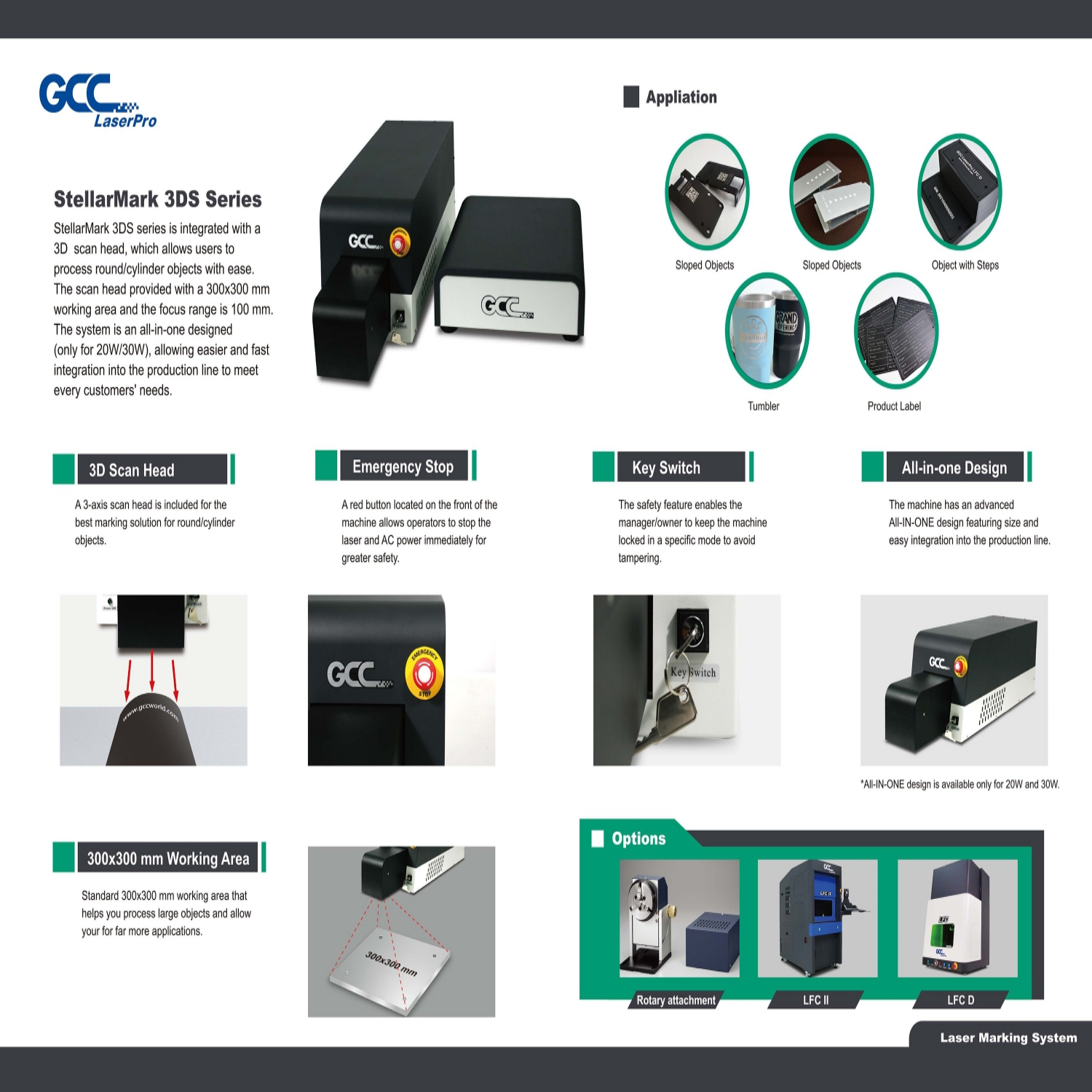 Piramīdas fokusēšanas rīksPiramīdas fokusēšanas rīks yra standartinė funkcija StellarMark IFII serijoje. Tas palīdz noteikt pareizo fokusēšanas attālumu ātri un precīzi.Atbilst ES standartiemGCC kā viens no pasaules vadošajiem lāzera iekārtu ražotājiem ir pienākums atbilst visiem Eiropas Savienības izvirzītajiem vides aizsardzības prasībumiem. Arī GCC iekārtas atbilst Eiropas Parlamenta direktīvām – 2002/95/EC un Bīstamo vielu ierobežošanai.